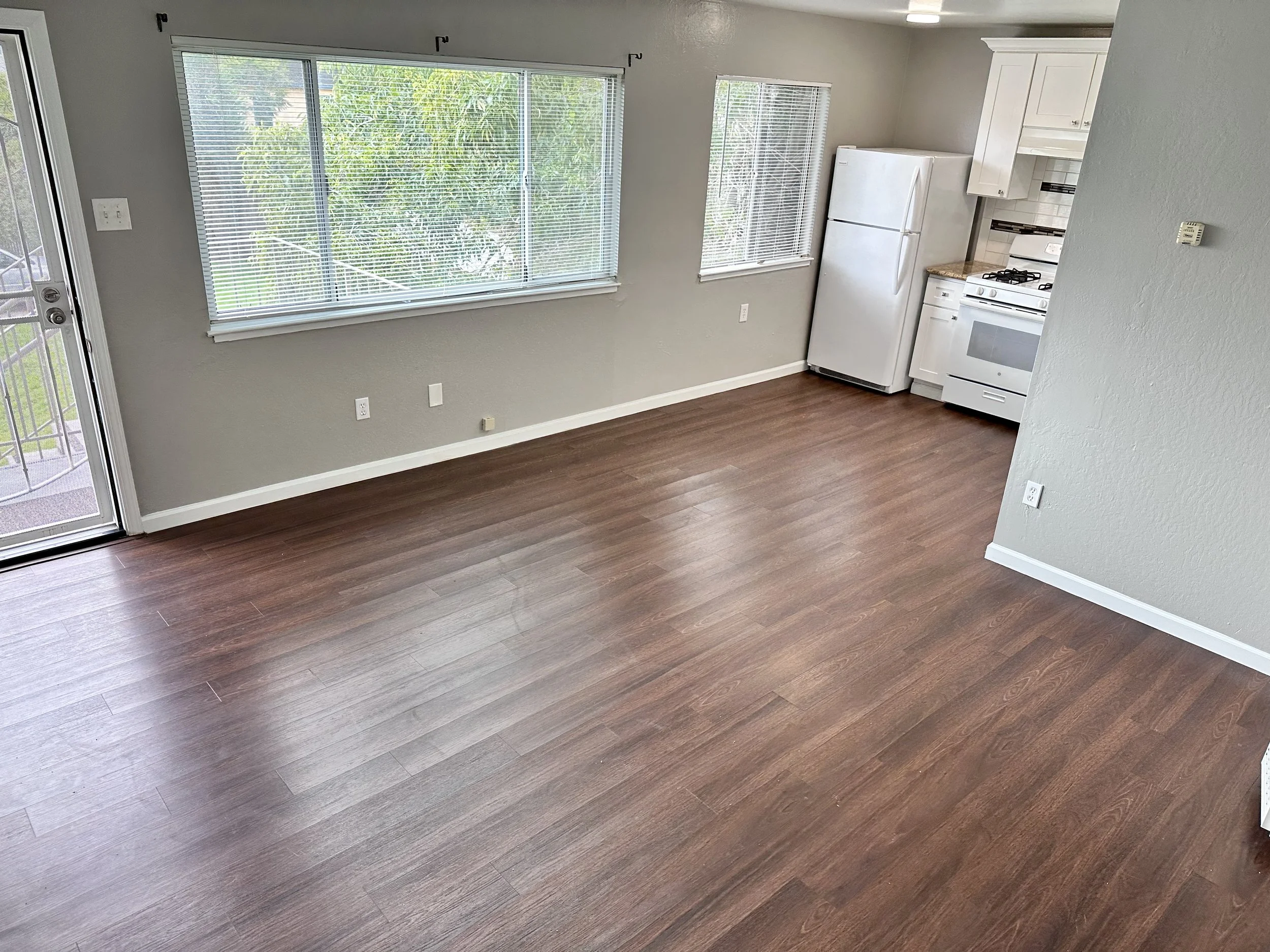Natural light, open floor plan, upstairs unit with tankless hot water heater. Backyard. Upstairs unit.